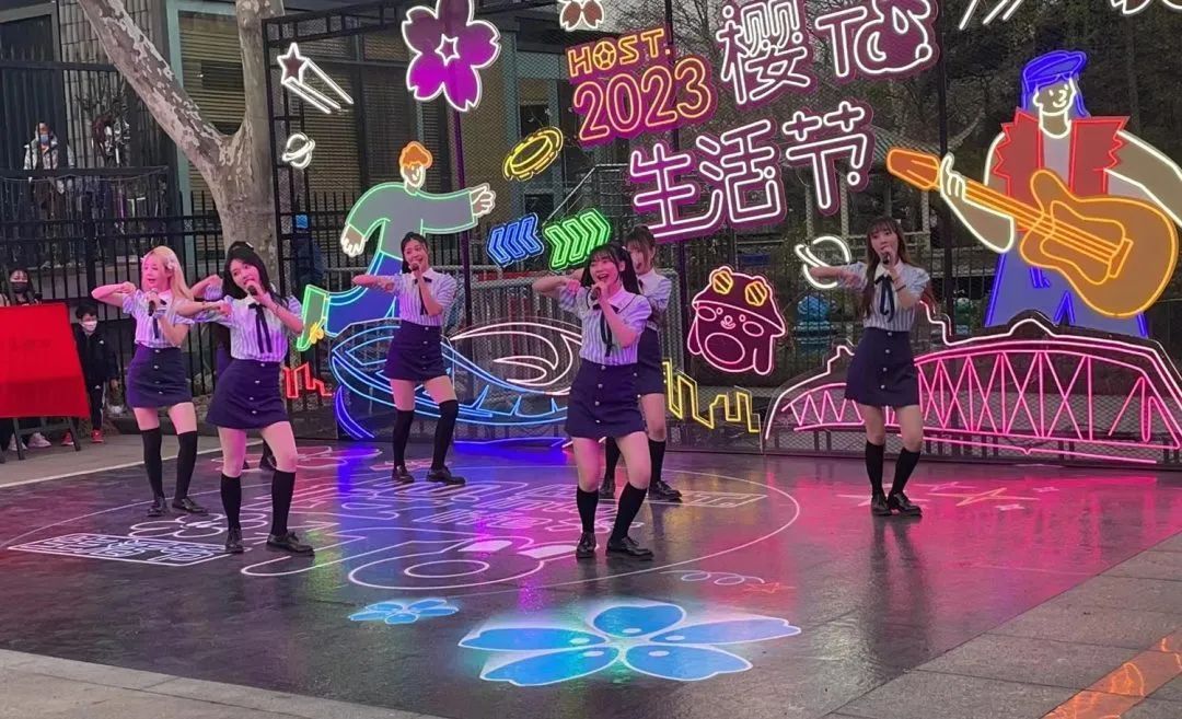 在人气女团SNH48充满活力的歌舞秀中,2023虹口足球场樱TO生活节开幕式拉开序幕。
