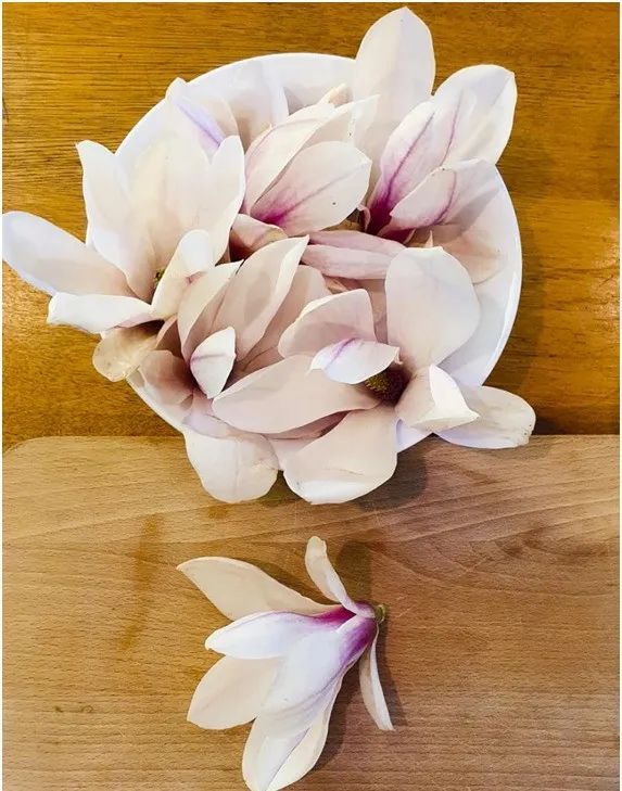 作为一种可食的鲜花,玉兰花味道芳香、清甜,富含维生素A、C和E,以及抗氧化剂、黄酮类和其他有益物质。它们有助于提高免疫力、抵抗炎症、预防感染、降低血压和胆固醇等,还有镇静、安神、改善情绪的作用。玉兰花可以生吃,也可以制作成沙拉、腌菜等,还可以泡茶或榨汁。在亚洲、拉丁美洲等不同的风味料理中,都可以将玉兰花加入。