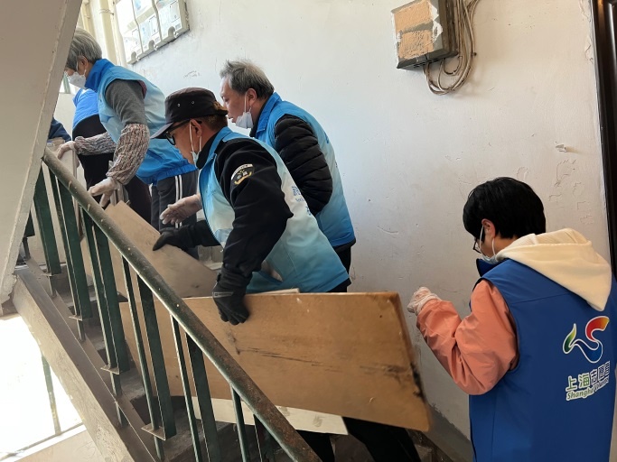“长桥蓝”志愿者积极加入其中,清理楼道堆物、擦拭楼梯扶手、除去墙面广告。为打造安全楼道,消防通道、灭火器有效期等安全场景和设备,也成为志愿者们巡查的重点。