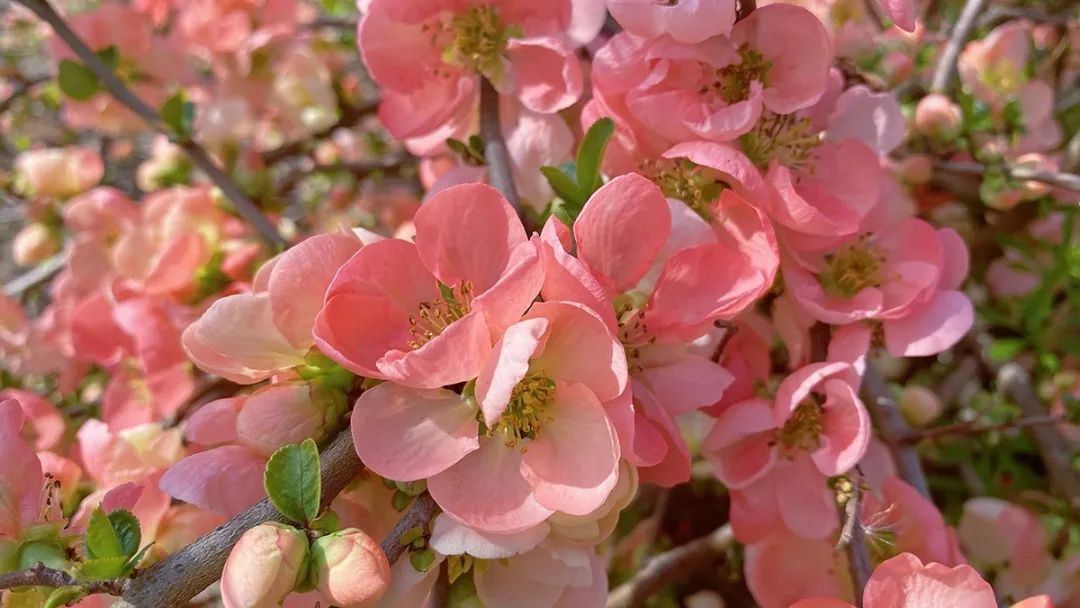 气温攀升,春花齐放。在上海辰山植物园春景园内,紧跟樱花、玉兰绽放的脚步,木瓜属海棠也“盛装”亮相,进入花期。
