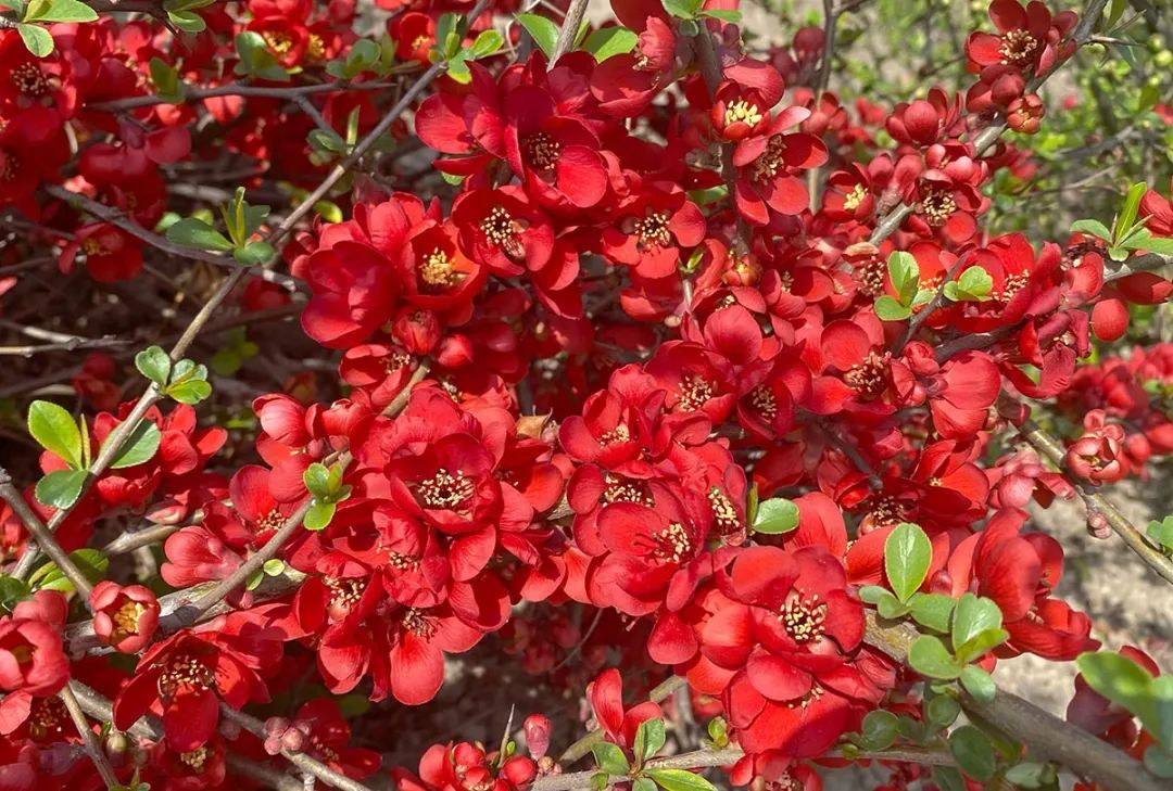虞莉霞说,目前园内大部分木瓜属海棠已进入盛花期,与河津樱一同登上春日舞台。而在以往的记录中,木瓜属海棠在大多数年份里都是在河津樱落花后进入盛花期的,预计最佳观赏期可以持续到3月下旬。