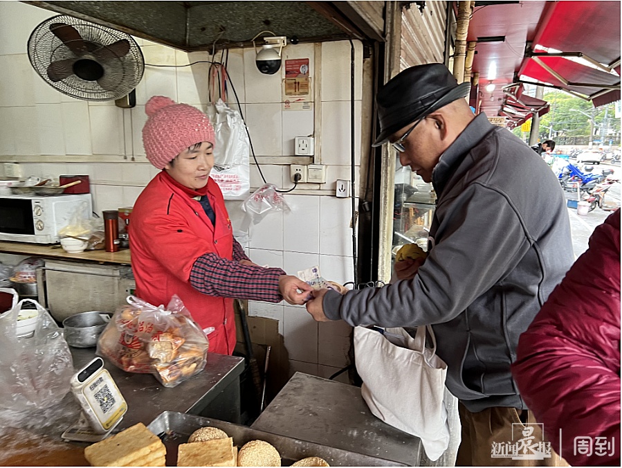 店里售卖的老虎脚爪是在长宁门店做的,何师傅凌晨四点多先去长宁门店做准备工作,六点多开始做老虎脚爪,做好之后再赶到石门一路的门店。