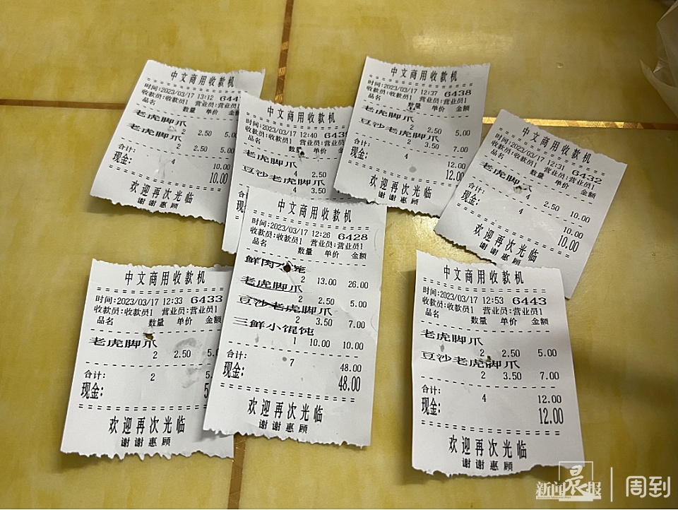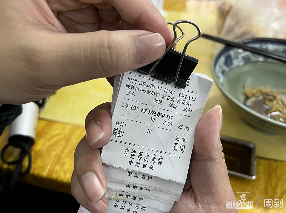 在与记者交谈的过程当中,一对老夫妻赶来,把当天店内剩下的十几只老虎脚爪都打包带走了。