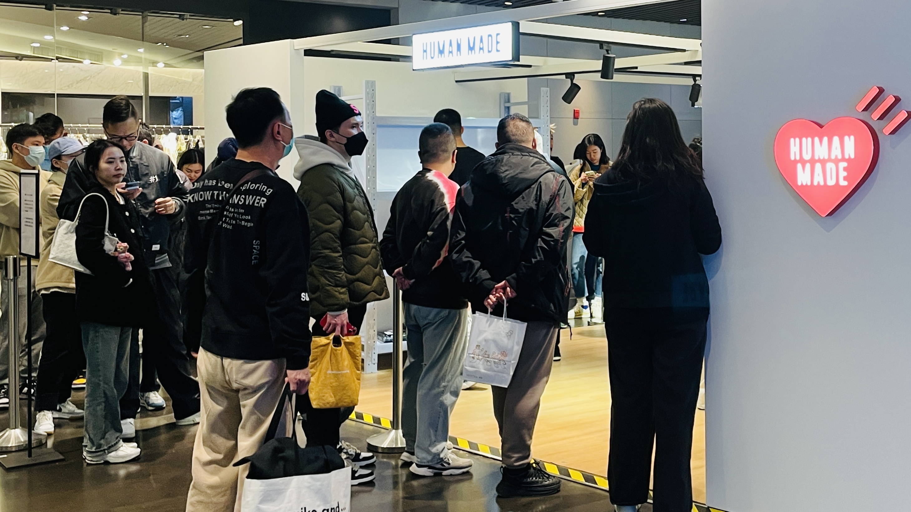 3月18日,日本潮流品牌HUMAN MADE同时在北京、上海、深圳和西安四座城市开设品牌快闪店,吸引不少粉丝专门到店打卡,感受日系街头复古魅力。