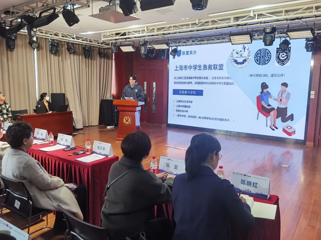 现场,相关领导还为荣获“2022年全国红十字模范单位”称号的园南中学进行了颁奖。园南中学将应急救护培训工作纳入学校平安校园建设,积极推动学生生命安全教育工作,致力于将红十字精神与生命健康教育、安全教育等德育工作有机结合,整个学校呈现出蓬勃向上团结友爱的勃勃生机,发挥了学校红十字会的独特作用。来自民办位育中学的顾雨峰同学进行了“高中生急救联盟的实践”案例分享,2022年起,他通过学校社团推广急救知识,并通过学生会组织倡导高中生急救联盟,用实际行动传播自救和互救精神,彰显了徐汇学子的爱心与担当。