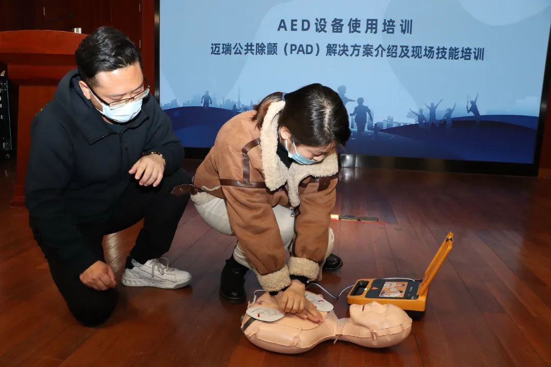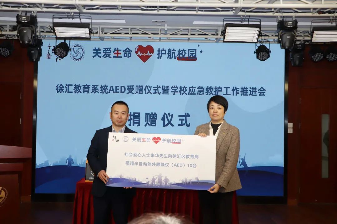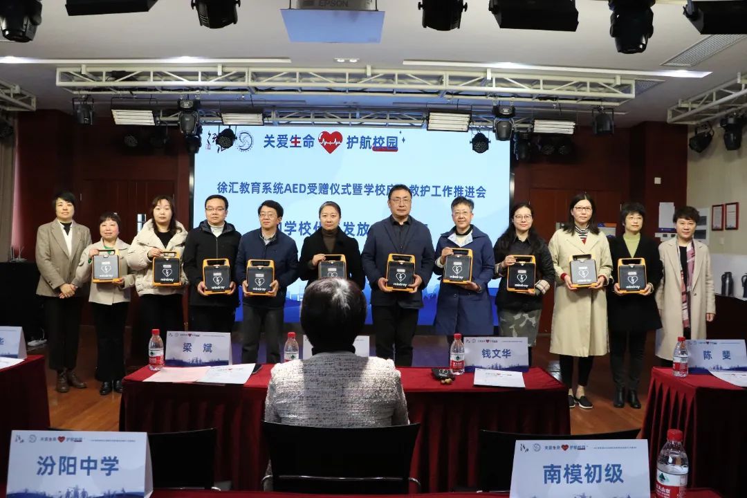 AED(自动体外除颤仪)被誉为“急救神器”,人在心跳骤停时85%~90%是室颤,治疗室颤最有效的抢救方法是在“黄金4分钟”内尽早使用AED进行体外除颤和心肺复苏。此次的AED设备由社会热心人士朱华先生捐赠,包括南洋模范初级中学、田林中学、长桥中学在内的10所初中学校受赠。10台小小的救命“红匣子”,由此开始进入美丽的校园,如同“家门口”的微型急救站,守护师生健康,为生命续航。