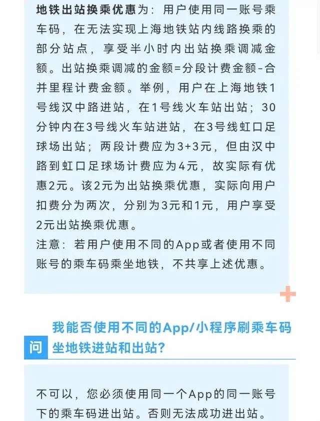 1.您单程坐地铁进出闸机时刷的乘车码,使用的介质需保持一致(即同一应用渠道同一账户的乘车码),地铁公交及公交与公交间换乘优惠的享受同样基于“同一介质”原则,为避免不必要的麻烦,请您务必知悉;