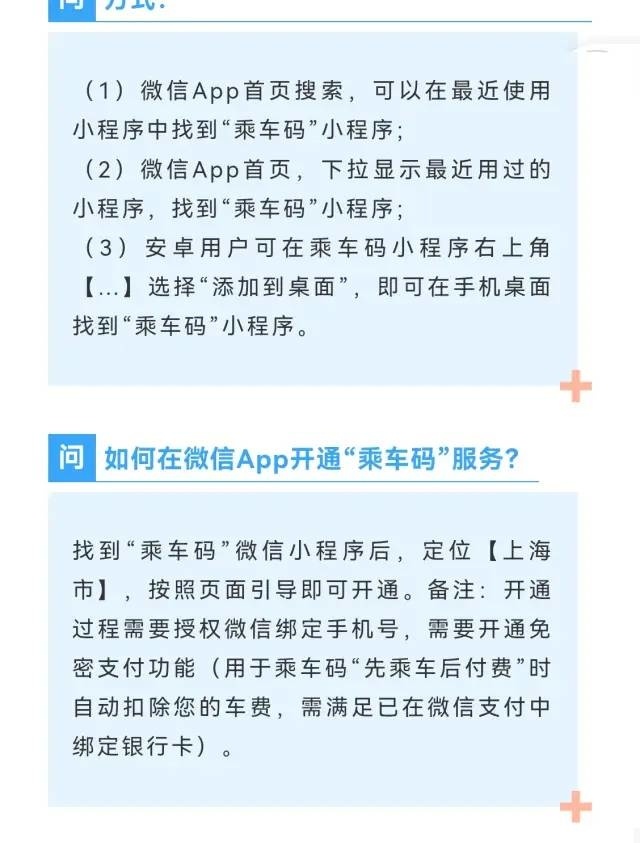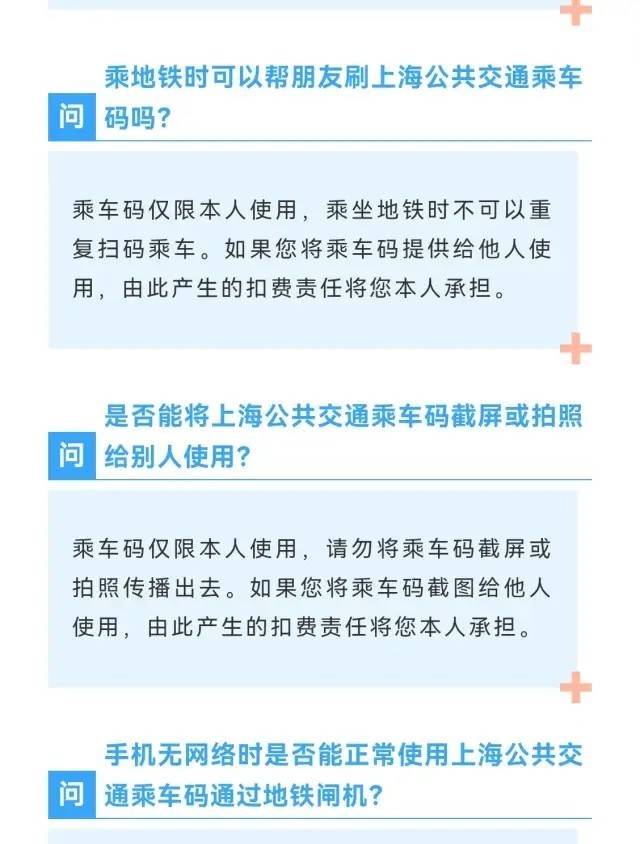 上海公共交通卡股份有限公司介绍,“一码通行”再升级啦!自即日起,用户只需在微信App内搜索打开“乘车码”微信小程序(定位“上海市”),生成乘车二维码界面后,将“乘车码”对准地铁闸机扫码口,即可乘坐本市全线地铁轨道交通。具体使用方式详见↓