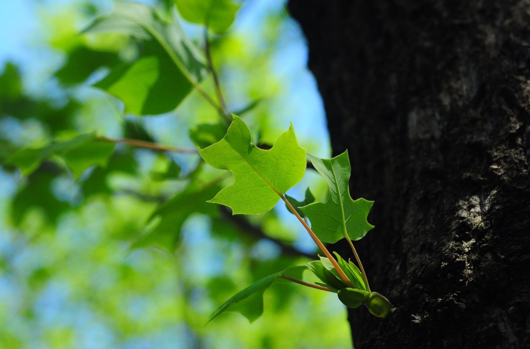 树木也一样,从沉寂的冬日中苏醒。绿叶开始源源不断地吸收空气中的二氧化碳,根系也在分秒必争地吸收土壤中的水分,在光合作用下二者被制造成有机物,也就是在这个过程中,树木在不断地长高变粗,悄悄长大。