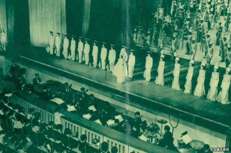 照片为1914年(大正3年),首次进行演出的“宝冢少女歌舞团”。1924年(大正13年),可容纳4000名观众的宝冢大剧场竣工