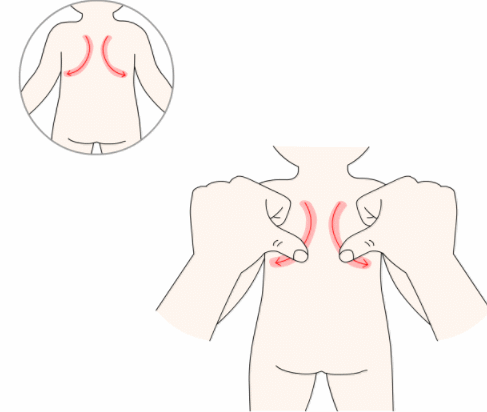 操作方法:从双侧肩井穴开始,沿着肩胛骨内侧缘,从上往下推、往两侧做分推,反复操作300次。