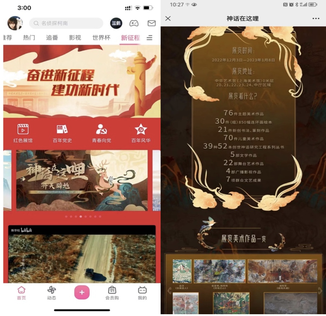 在汇聚年轻人的平台哔哩哔哩,展览官方专题页面“神话在这哩”上线首日即获 195.6 万+的搜索量,展期内总访问量逾 500 万。