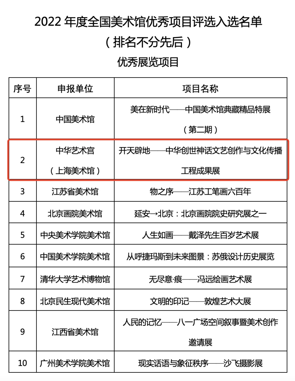 近日,文化和旅游部艺术司公布了2022年度全国美术馆优秀项目名单,中华艺术宫(上海美术馆)“开天辟地——中华创世神话文艺创作与文化传播工程”成果展项目成功入选。