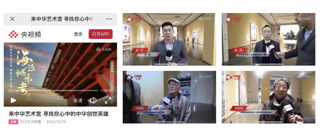 展期内,央视频开启“来中华艺术宫 寻找你心中的中华创世英雄”直播通道,创下10.6万人次在线观看的记录。