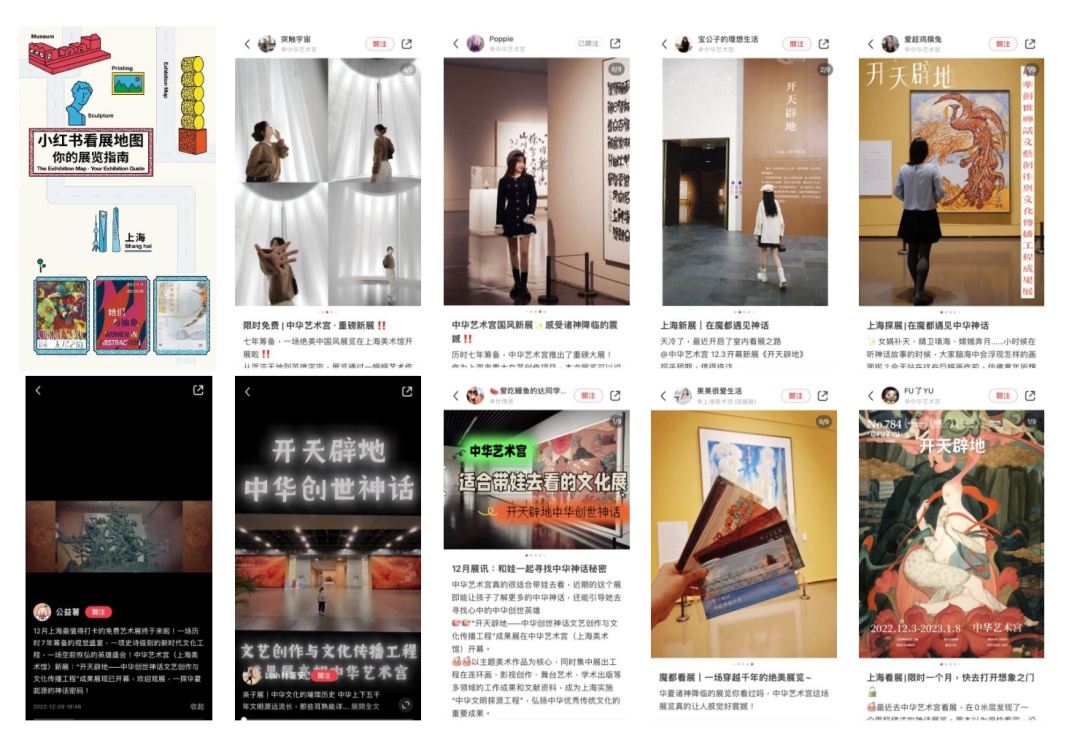 在小红书APP,我馆邀请多位博主来到中华艺术宫探展,并与博主共创呈现了十余篇高质量探展图文,共获得互动量1300余次,浏览40万余次。吸引自来水观众主动观展,在社交平台上引爆展览口碑。