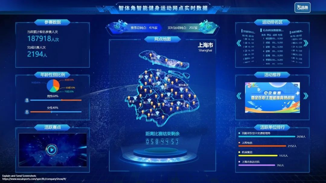 据主办方介绍,此次比赛分为企业团体赛和个人赛,设有智能单车赛、智能划船赛、智能呼啦圈、智能跳绳赛4个项目,以线下健身与线上云端计分相结合的方式,现场通过智能装备传感器直接实时传输到智体角5G云控管理平台,发布比赛数据,自动统计排名。