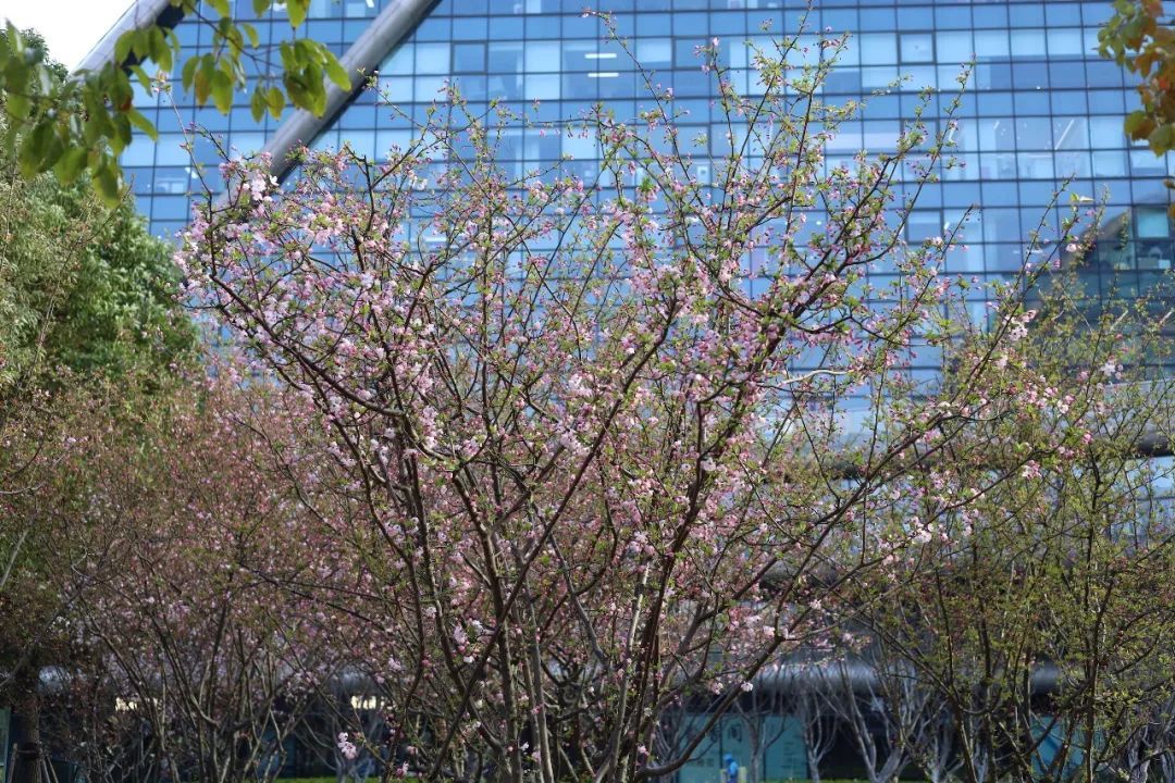 除此之外,初春赏花还可以看联泾港边的玉兰,中海油门口的海棠和紫荆,外环生态绿道的“群花”……有趣的是,中山国际广场的晚樱最近也着急忙慌地开花了,就像正在“乱穿衣”的人类一样。