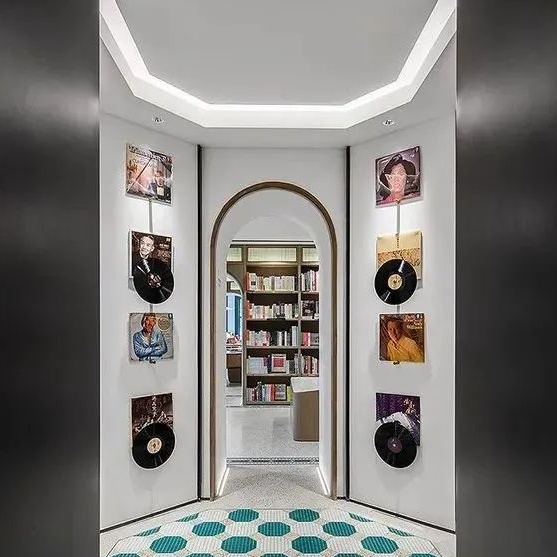复刻了黑石公寓建成时马赛克地砖原貌的音乐主题书店——幸福集荟,在店堂内特设唱片试听室,海内外各式各样的黑胶唱片供大家随意试听。试听室内每日更新推荐三张唱片,每天都能为音乐爱好者带来不一样的春日浪漫心情。