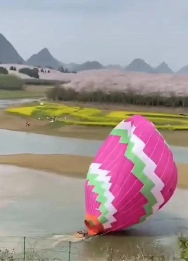 3月21日中午1时许,贵州省贵安樱花园一观光热气球突然失控,从空中飞起后坠入水库,当时气球上有7名游客。