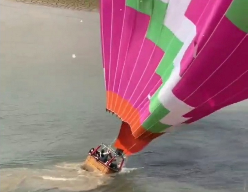 热气球失控坠入水面
