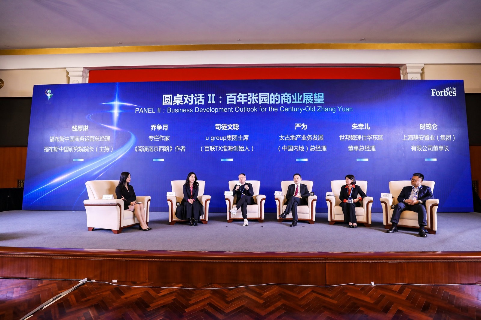 圆桌讨论二的话题则围绕“百年张园的商业展望”,聚焦国内外商圈新变革和零售新趋势,由福布斯中国商务运营总经理钱厚琳主持,与《阅读南京西路》作者乔争月、太古地产业务发展内地总经理严为、百联TX淮海总策划司徒文聪、世邦魏理仕华东区董事总经理朱幸儿、上海静安置业(集团)有限公司董事长时筠仑展开对话,分别从各自领域的实践和观察出发,探讨商圈新机遇。