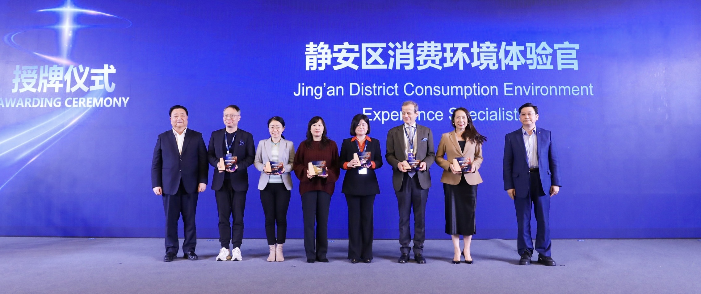 现场还举行了“静安区消费环境体验官”授牌仪式。来自不同行业领域的12位“静安区消费环境体验官”,将成为体验消费环境优化和企业感知度的敏锐“触手”,及时反馈问题、提供建议,共同参与推动提升消费者满意度、建立友好客商关系、优化区域消费环境。
