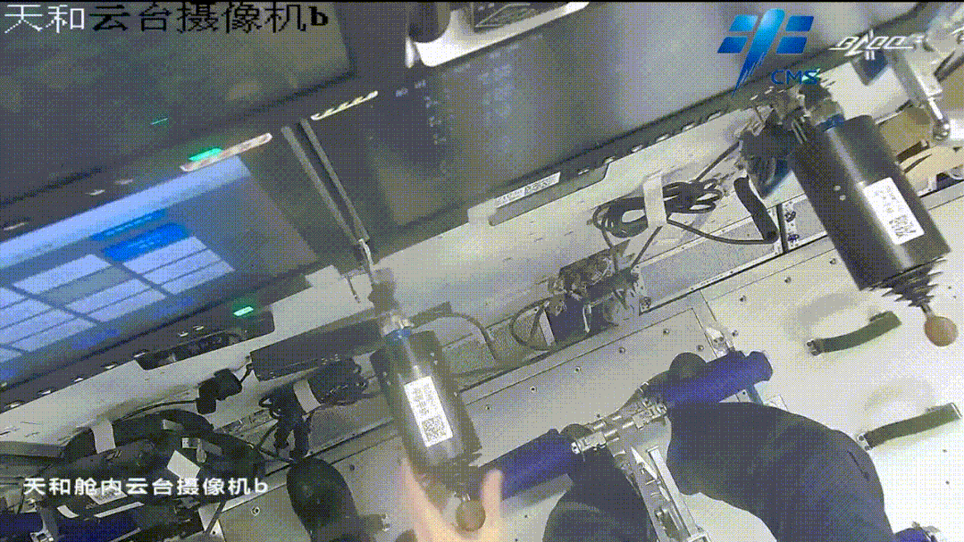 空间站上航天员根据测量参数遥控追踪飞行器完成的交会对接。