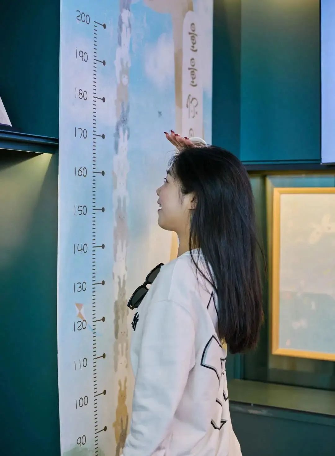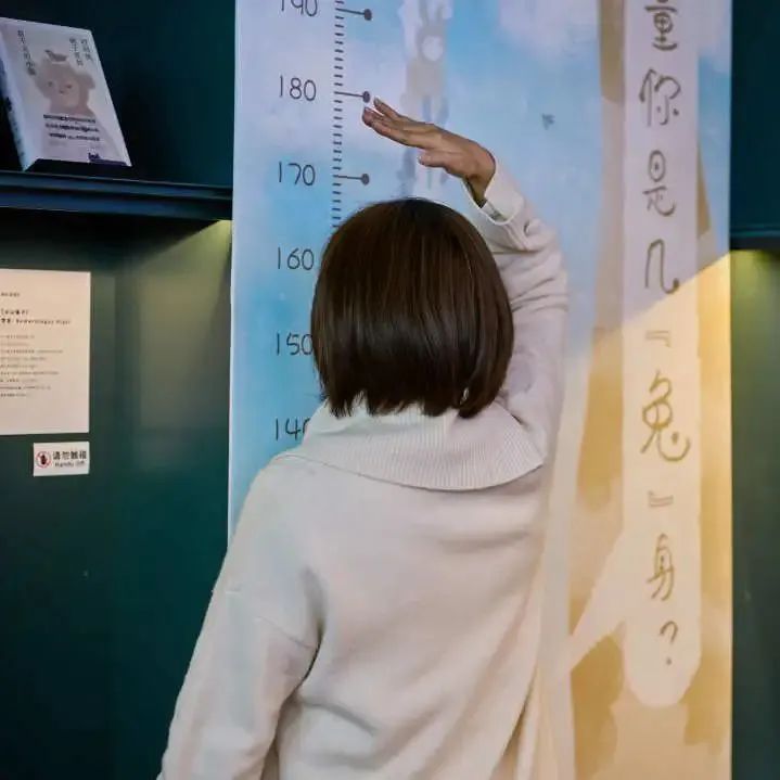 主办方还选取兔子与长颈鹿主题的画作,将兔子每个的位置分别标上对应的高度,让你量量自己是几“兔”身。