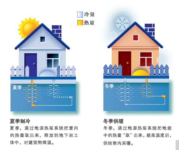 地源热泵系统是指以岩土体、地下水或地表水为低温热源,由热泵机组、地热能交换系统、热泵机房辅助设备组成的冷热源系统。