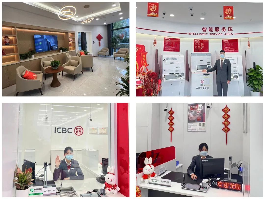 舒适敞亮的网点环境。网点内客户引导区、综合业务服务窗口、智能服务区布局有序,配色灵动雅致,设计元素集现代化与特色化为一体,为市民带来一站式、便捷化的金融服务体验。还布设有舒适惬意且富有格调的贵宾服务区,专业的客户经理提供高品质的财富管理服务,让客户感受宾至如归。