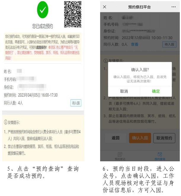 1.在祭扫高峰日,市民需在预约时间内,出示凭证,进入福园。除祭扫高峰日需要预约限流外,其他时间市民均可直接现场祭扫。对落葬不设总量控制,可电话、现场预约。