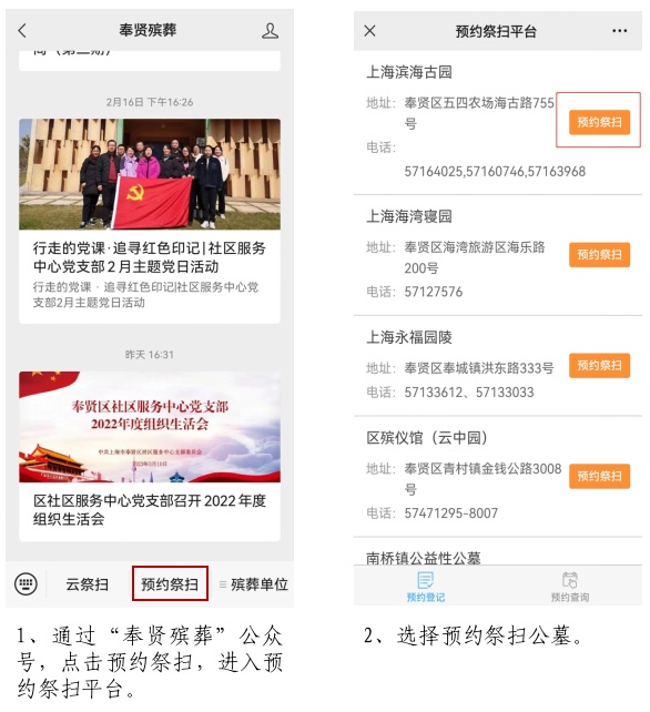 线上预约方式:自3月18日8时起,“奉贤殡葬”微信公众号开启高峰日预约服务。