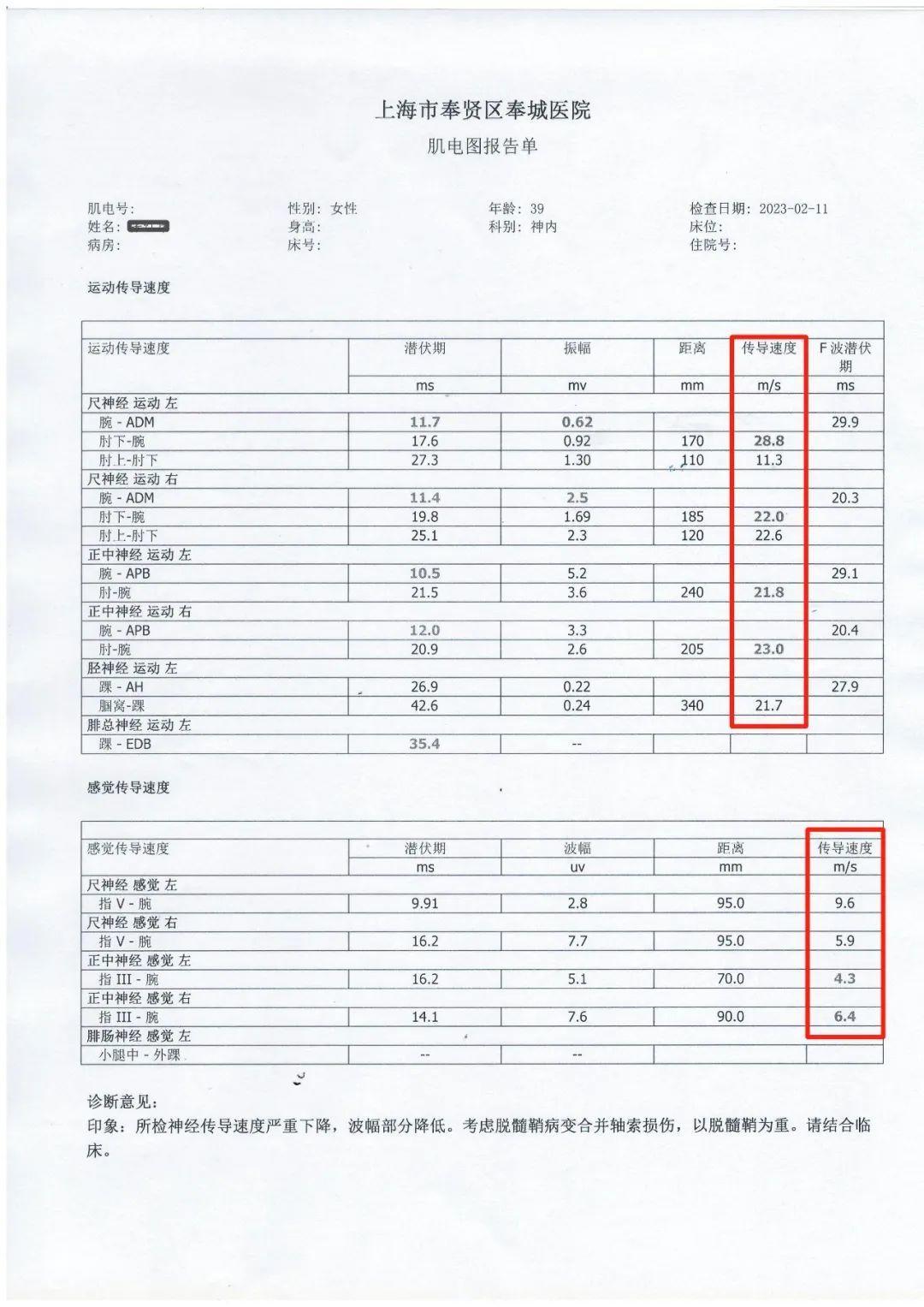 但感觉神经和运动神经的问题却都很严重,而且很特殊———多条神经均匀性脱髓鞘病变。