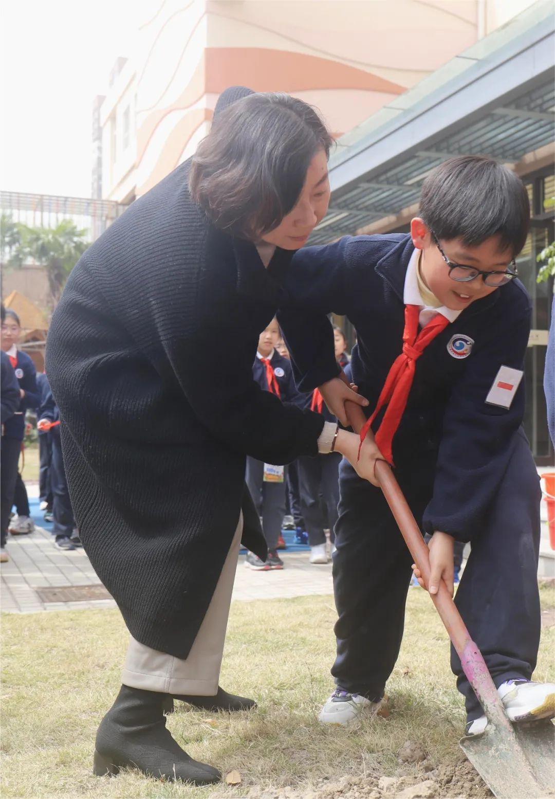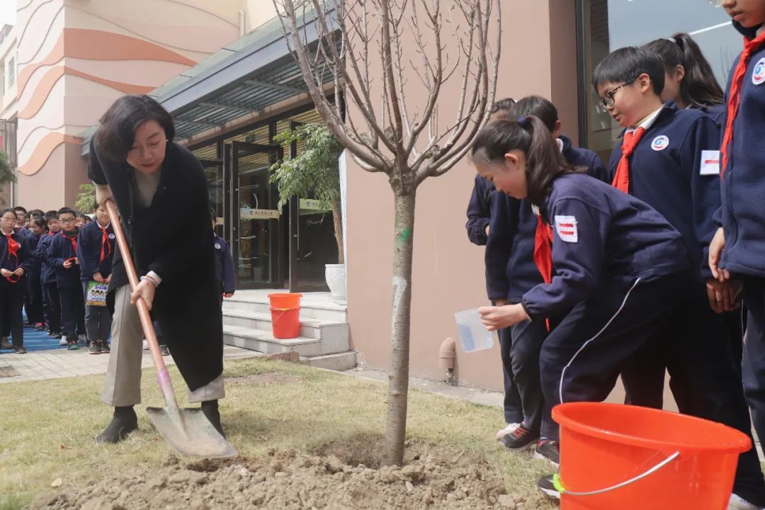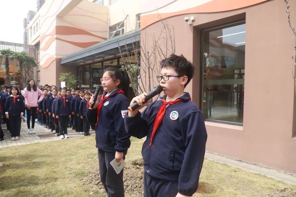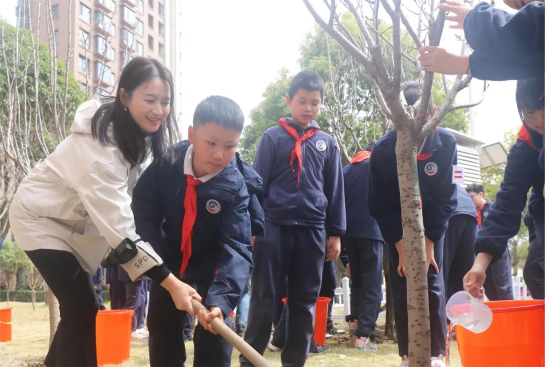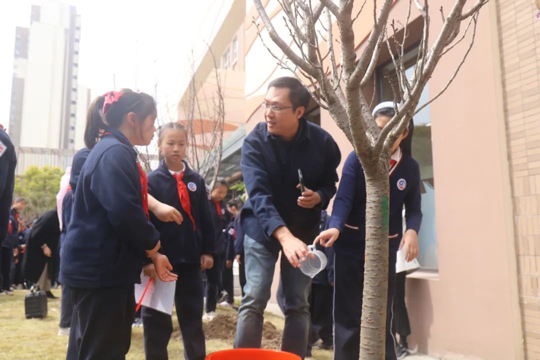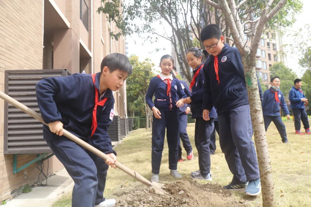 春风催新绿,植树正当时。在这春意盎然的阳春三月,徐汇实验小学五年级的同学们怀揣着一颗对母校和老师感恩的心,亲手种下一棵棵樱花树,记录一段段成长路。