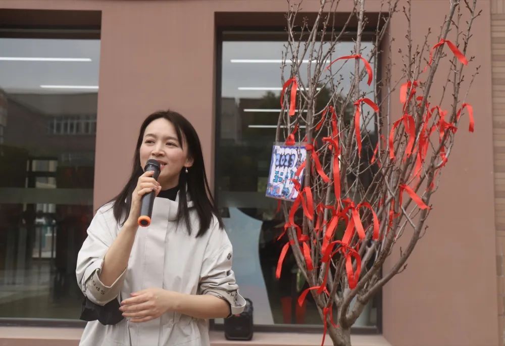 活动中,学校党支部肖书记为全体五年级毕业生送上了真挚的祝福与希望,她激励小“乐乐”们铭记“团结奉献”四字,从樱花树中汲取力量,踏实进取,展翅翱翔。