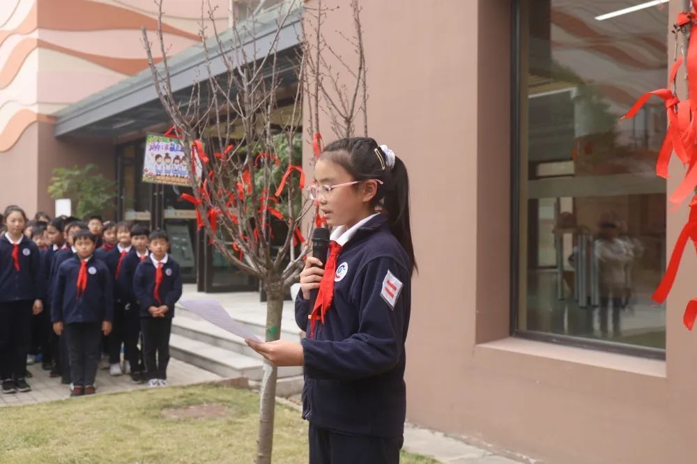 随后,五(1)中队的钮如一和五(2)中队的丁睿恩同学作为学生代表发言,表达了对母校的努力栽培、老师的殷殷教诲的感恩之情。