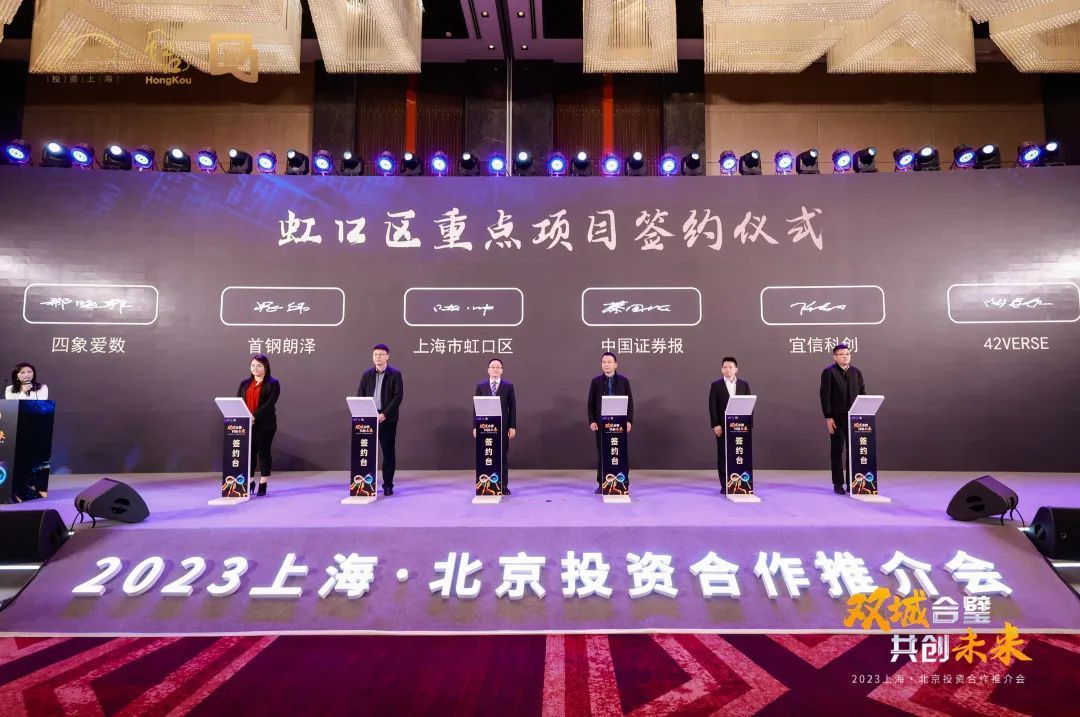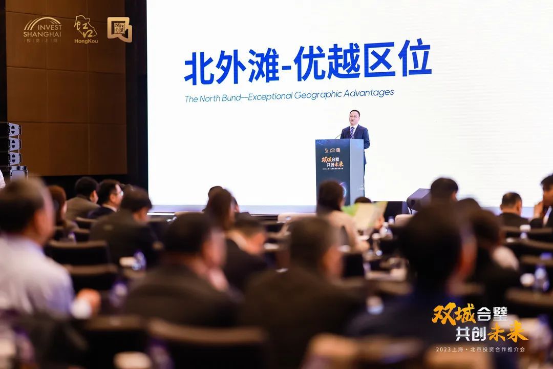 3月23日,“双城合璧 共创未来”2023上海·北京投资合作推介会在北京成功举办。在这场京沪合作推介会上,虹口区总投资额近30亿元的5个重点项目集中签约,涉及新材料、高端装备、数字经济、元宇宙、金融服务等重点领域,投资上海·虹口北京服务点同时揭牌成立。上海市经济和信息化委副主任刘平出席并致辞,副区长陈帅作北外滩投资推介。
