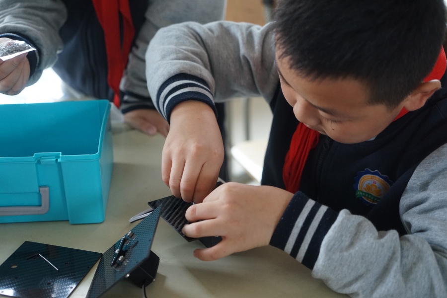 学生在制作与气象相关的小实验机器