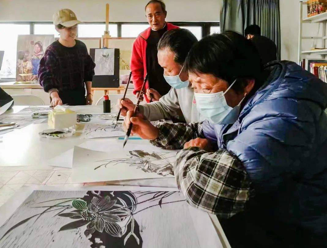除了举办展览,乡村美术馆还推出了“乡村美育·田间课堂”公益行动。国画鉴赏、传统书法、创意版画、趣味手工等多样的活动吸引不少对艺术感兴趣的村民、市民。“不只是我们本村村民参与,还有很多来自本镇、隔壁镇和市区的学员。”包伟说,在课堂上,既有6岁的儿童,也有70岁的老人,不同年龄、背景的人在同一空间作画。
