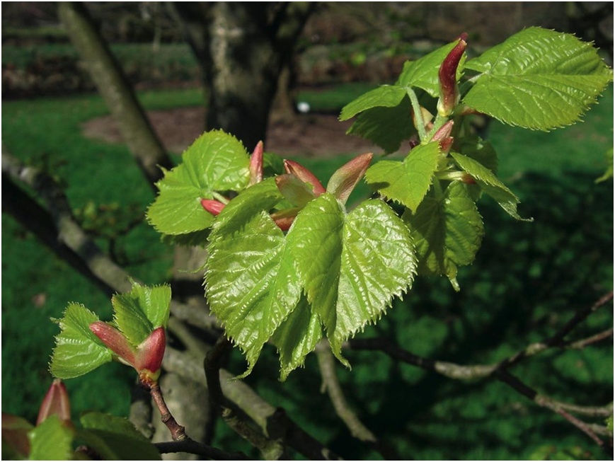 宋代大诗人苏轼在《惠崇春江晚景》中的名句“春江水暖鸭先知”,几乎妇孺皆知,千古传唱。在上海园林大力倡导“春景秋色”的当今,受古人的启示,在景观中也可寻找对春天先知先觉的树木,如那些原产中国北方的植物,它们经过冰天雪地的长期考验,生长积温较低,属于给点阳光就灿烂,有点温度就生长的一族。3月下旬,在梧桐树还深睡未醒的时候,紫椴已是郁郁葱葱。紫椴是东北的主要造林树种,上个世纪70年代紫椴从东北引种至上海,成了大上海的“移民”。如今,上海的紫椴已是硕果累累的大树。