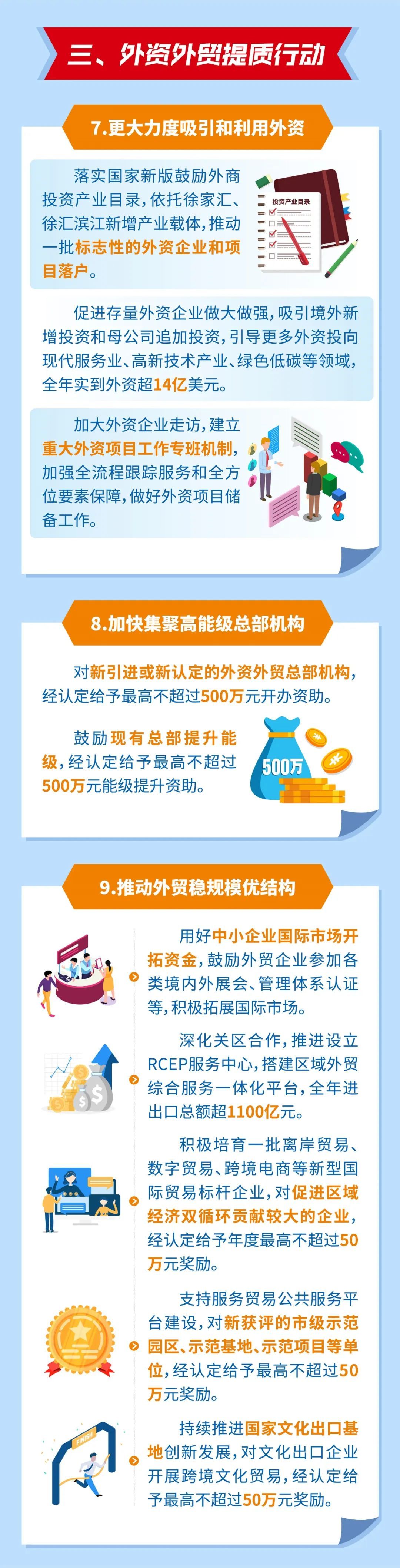 日期,徐汇区制定了《徐汇区提信心扩需求稳增长促发展行动方案》,提出9方面28项工作举措,包括全面激发消费活力、全力提速重大项目建设、更大力度吸引和外资等。详见↓