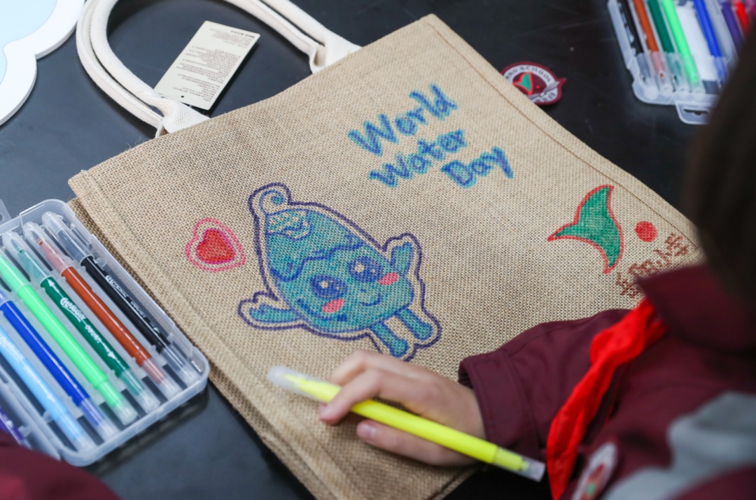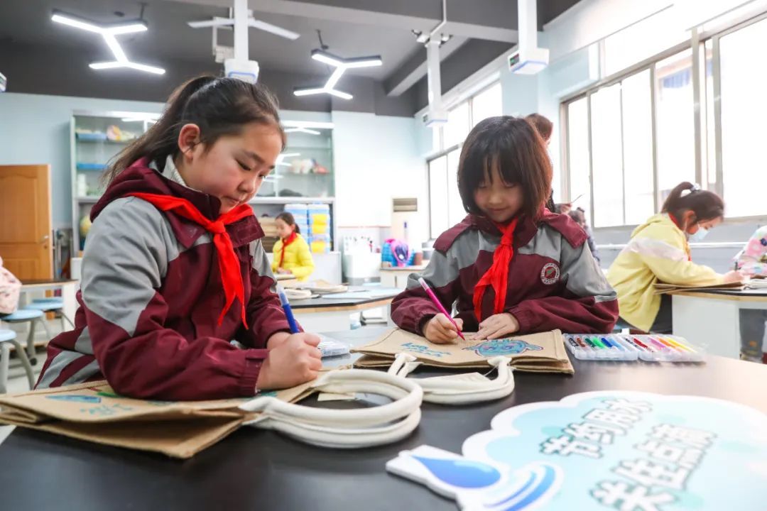 活动现场,工作人员通过播放科普视频、PPT课件,演示节水设备等方式,生动形象地向学生们宣讲了“世界水日”“中国水周”宣传主题、水文法律法规和节约用水等相关知识。随后,学生们在环保手袋上创作节水主题绘画,大家兴趣高涨,纷纷表示学到了很多节水知识。