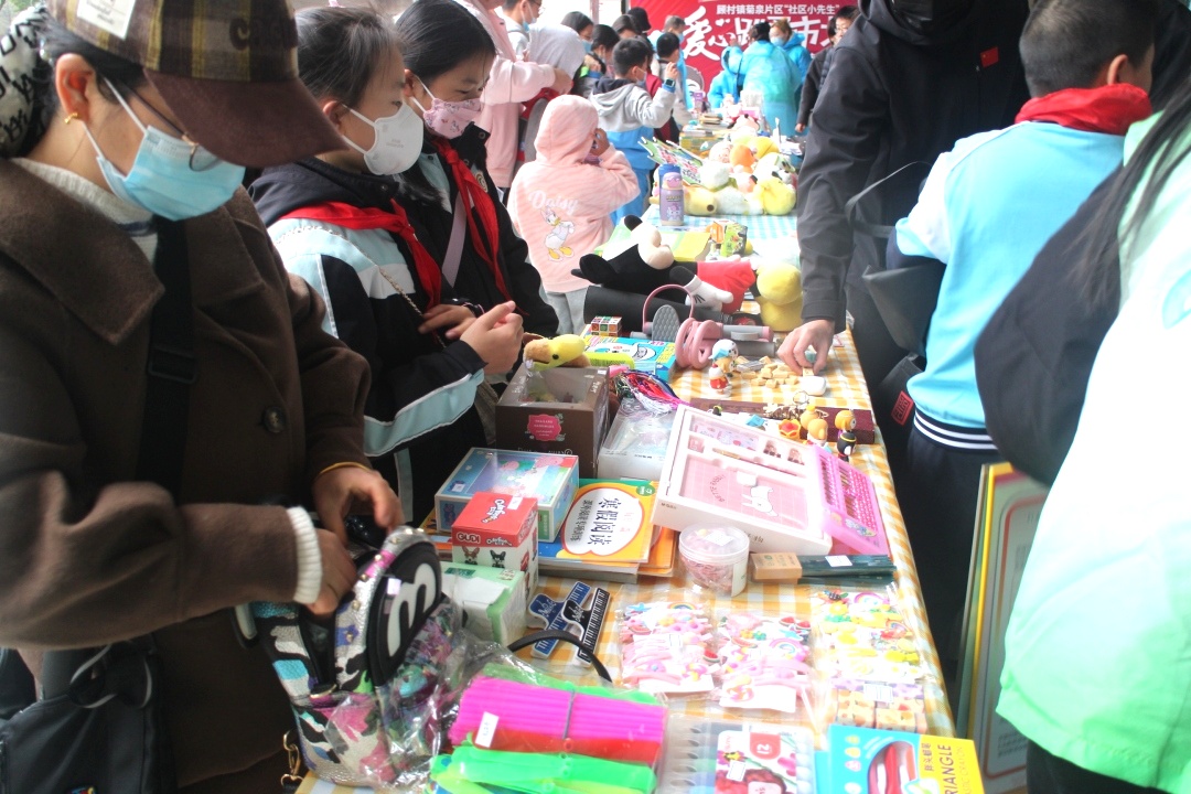 本次义卖摊位是面向顾村镇菊泉片区招募的义卖小摊主,孩子们积极参与,将义卖所得自愿捐赠给红十字会,剩余“货物”中的书籍则自愿赠予顾村镇儿童服务中心(南),将爱心传递给更多人。
