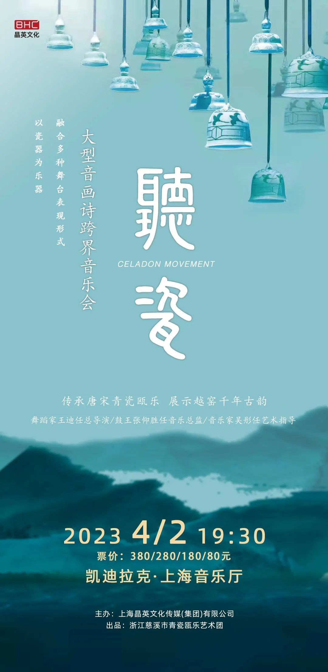 大型音画诗跨界音乐会《听·瓷》,整场演出分为七个乐章:叩天、元尘、拙焱、汲露、锻烁、祈桑、听瓷。采用了现代多元舞台表现手段,以越窑青瓷文化为连接点,以构成青瓷元素的金木水火土五行为表现点,将音乐融于舞美、设计、舞蹈等元素中,再现盛唐遗音,让观众在静谧唯美的画面中,聆听青瓷发出的天籁乐音。