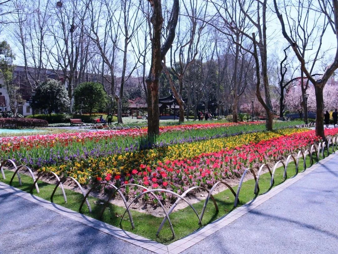 2023年郁金香季已至,作为本季主打花卉,闸北公园东园的郁金香已盛开。闸北公园今年种植郁金香4万余株,共1290平方米,品种包括大爱、耐力、橙色骄傲、金色牛津等,各色各样的郁金香组成了一幅美丽的画卷。