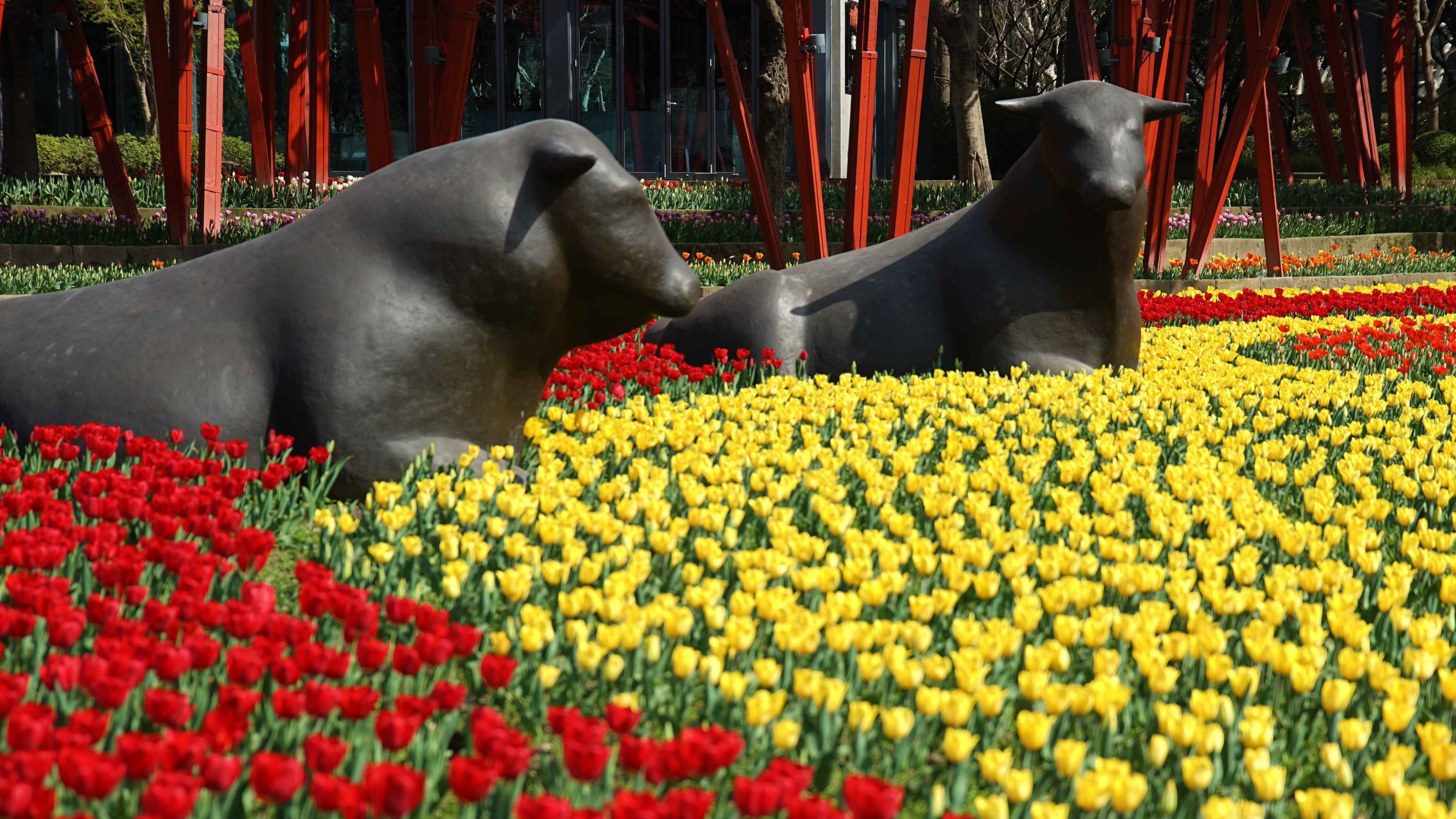 静安雕塑公园今年共计种植郁金香约16万株,以晚花品种为主,包括红色星空、粉色佳人、卡拉克里尔、十字军、幸福一代等十个品种,种植于台地园与七彩花带两处点位。