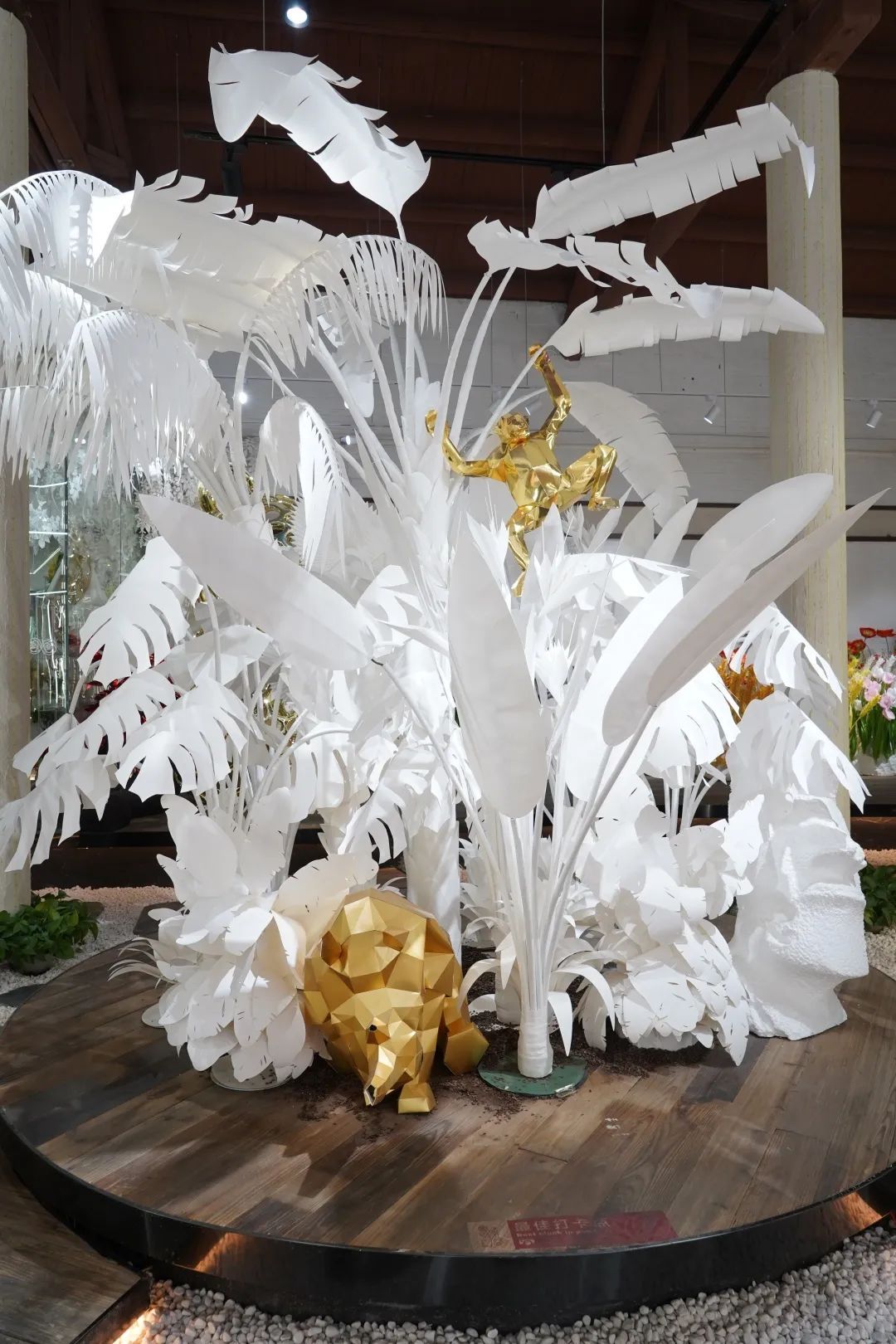 张志慧介绍,馆内展出的纸艺作品均来自嘻谷艺术馆团队旗下的一家实体纸艺工厂——炯玛实业(上海)有限公司,其中几组大型作品曾出现在国际各大奢侈品牌的橱窗、美陈装置等场合的布景中。