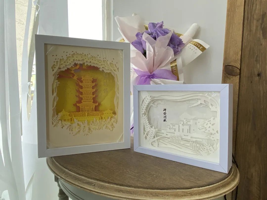 在嘻谷艺术馆,除了可以欣赏到对标国际水准的纸艺展品,游客还可以购买到一些别具特色的文创纸艺产品。记者发现,方塔、唐经幢、鹤唳华亭等经典的松江意象出现在许多作品中。“希望可以把纸艺这项传统又多变的技艺和松江丰厚的历史人文底蕴相结合。”张志慧透露,更多松江元素日后将在馆内得到展示。