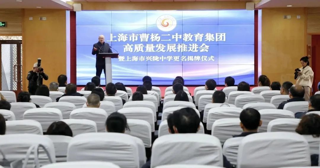 近日,上海市曹杨二中教育集团高质量发展推进会暨上海市兴陇中学更名揭牌仪式举行。副区长王珏出席并致辞,市教委基教处、市教科院普教所、区教育局等领导参加本次推进会。
