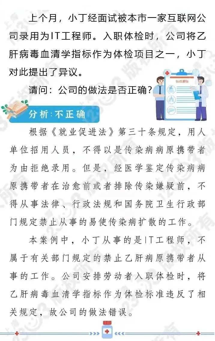 入职体检时公司可以要求检查乙肝病毒指标吗?